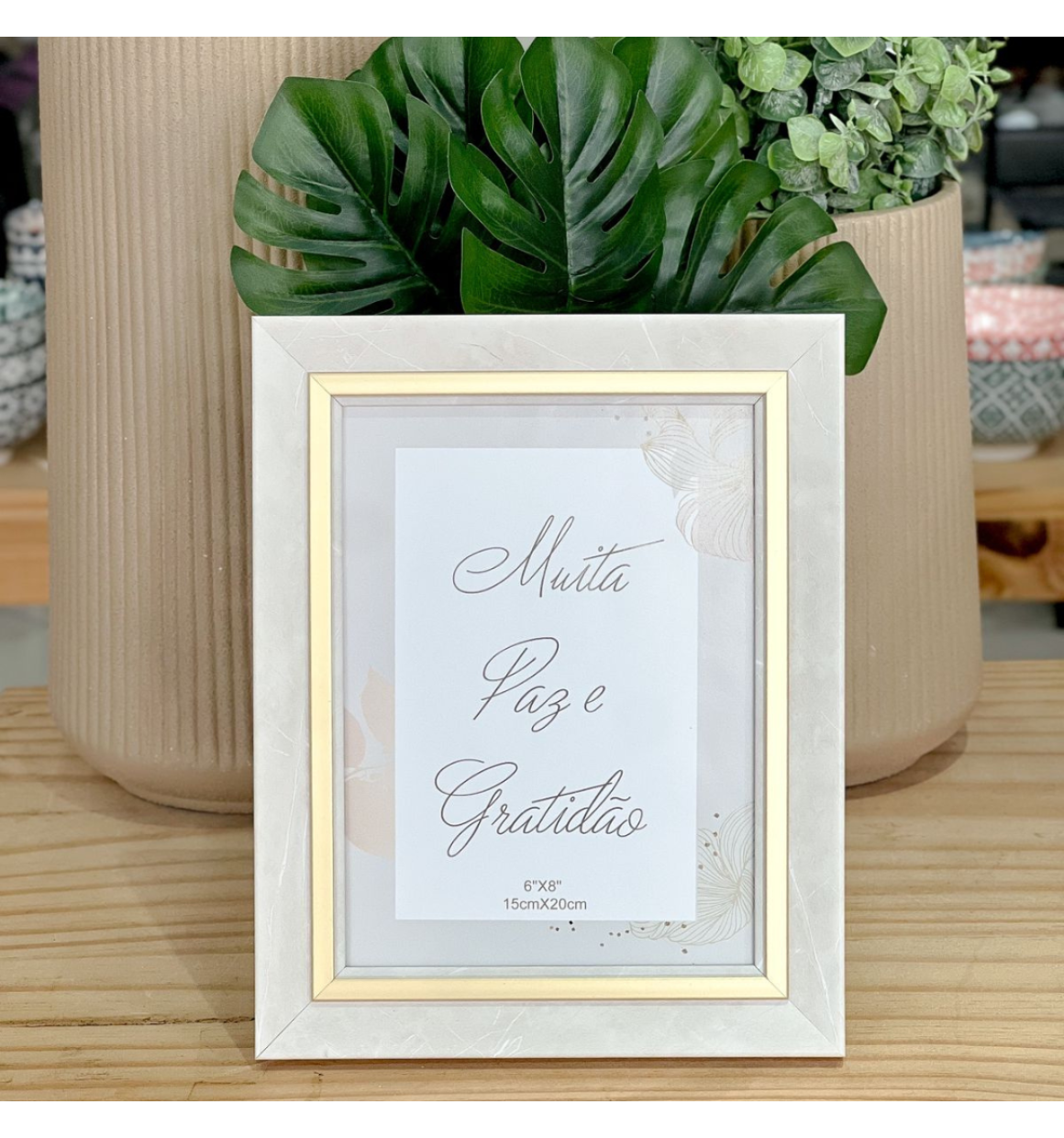Porta Retrato Bege "Muita Paz e Gratidão" 15cm X 20cm