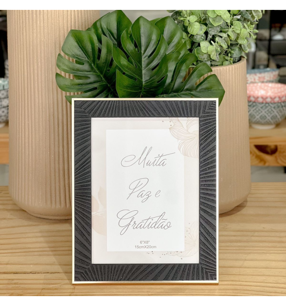 Porta Retrato Preto com Moldura Dourada "Muita Paz e Gratidão" 15cm X 20cm