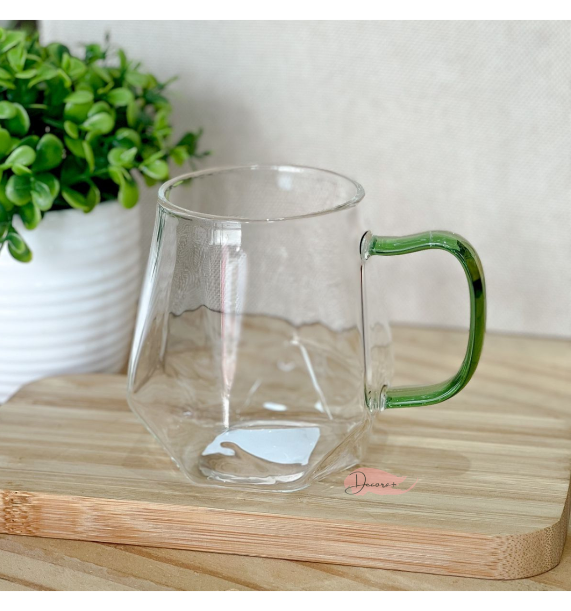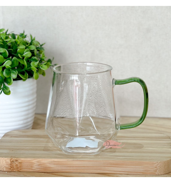 Caneca de Vidro Diamante 330ml c\ Alça Verde