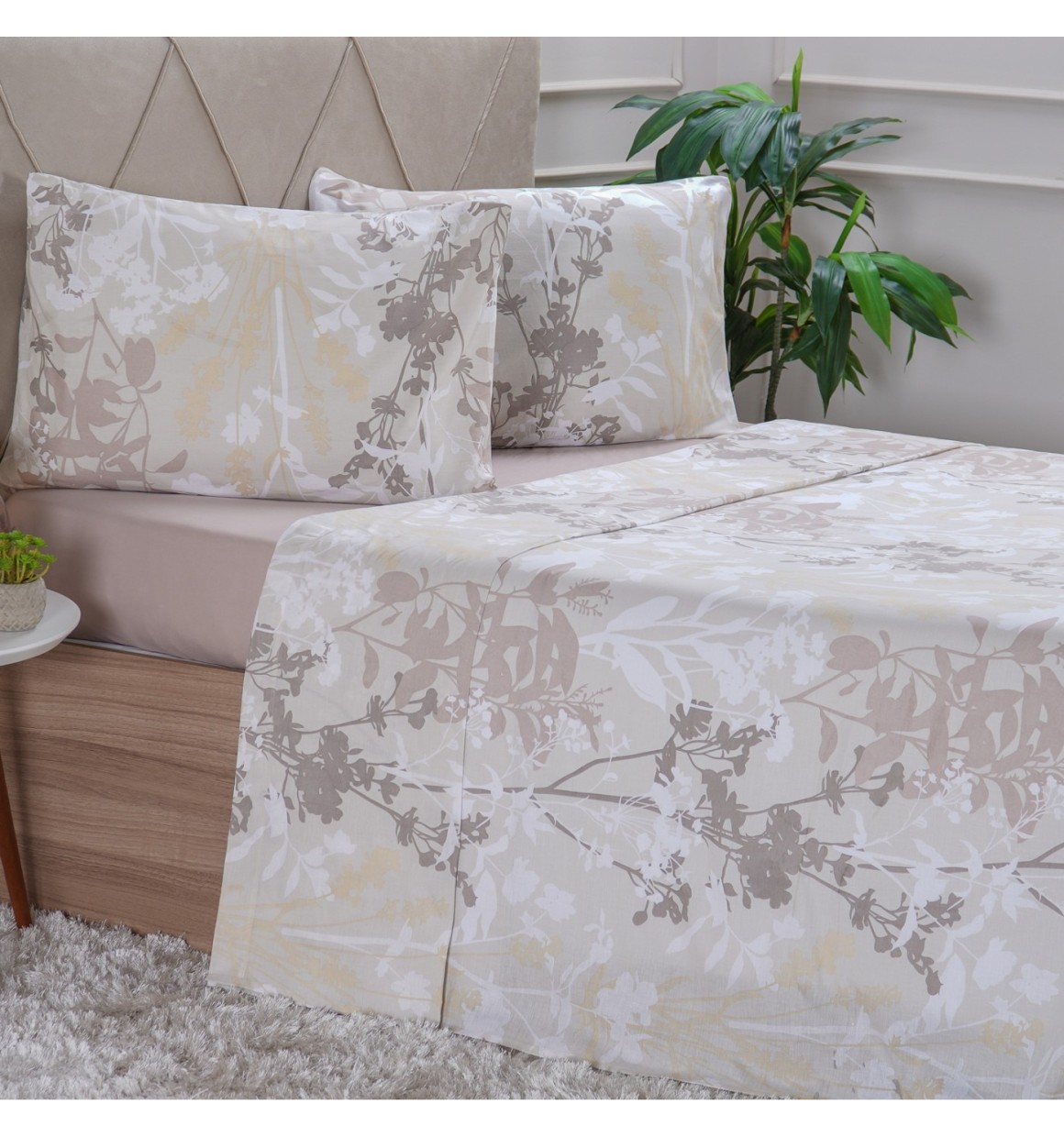 Jogo de Cama Duplo 150 Fios - Queen 4 peças Natur