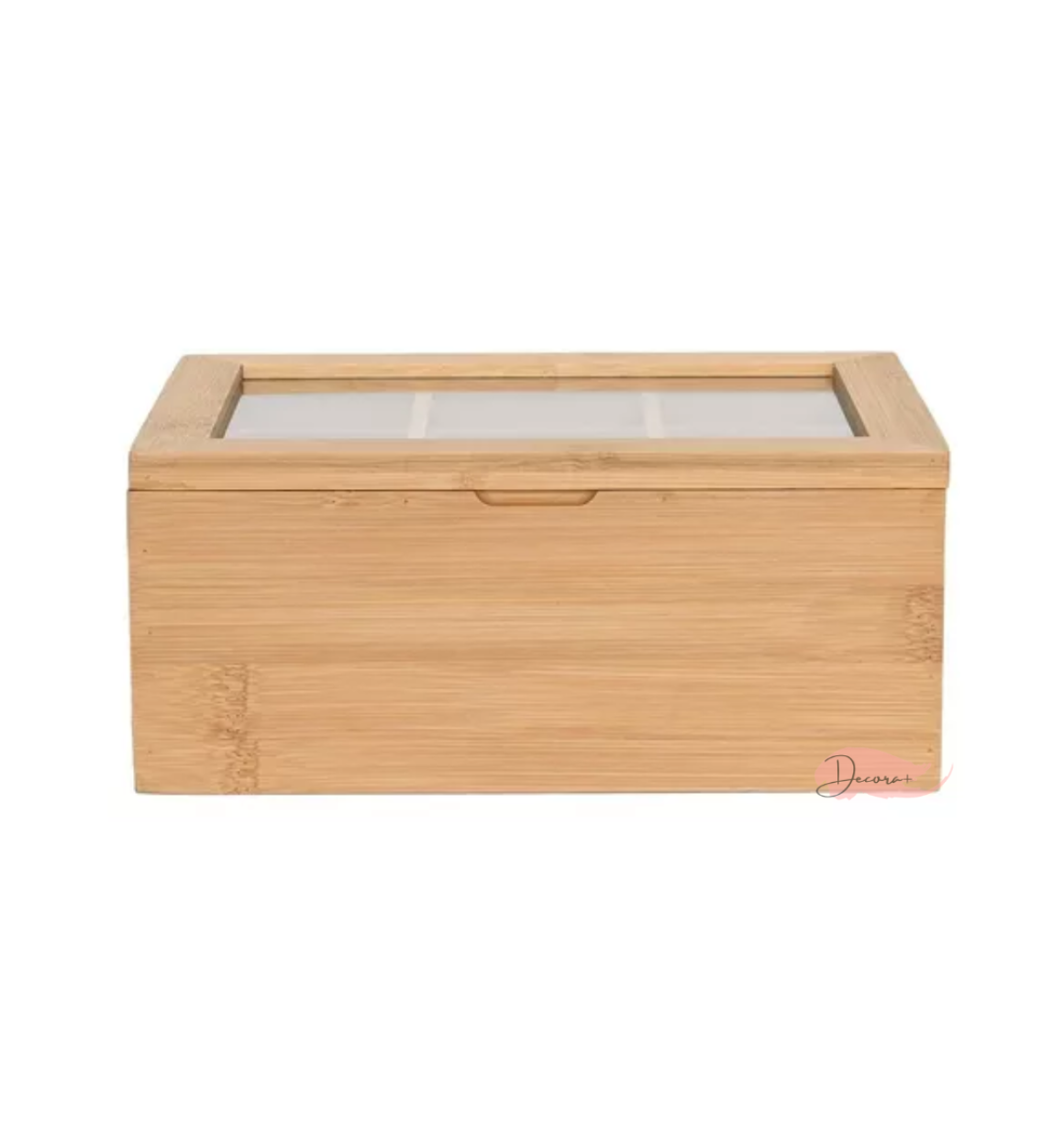 Apresentamos a nossa incrível Caixa para Chá de Bambu com 6 Divisórias com tampa de Acrilico.