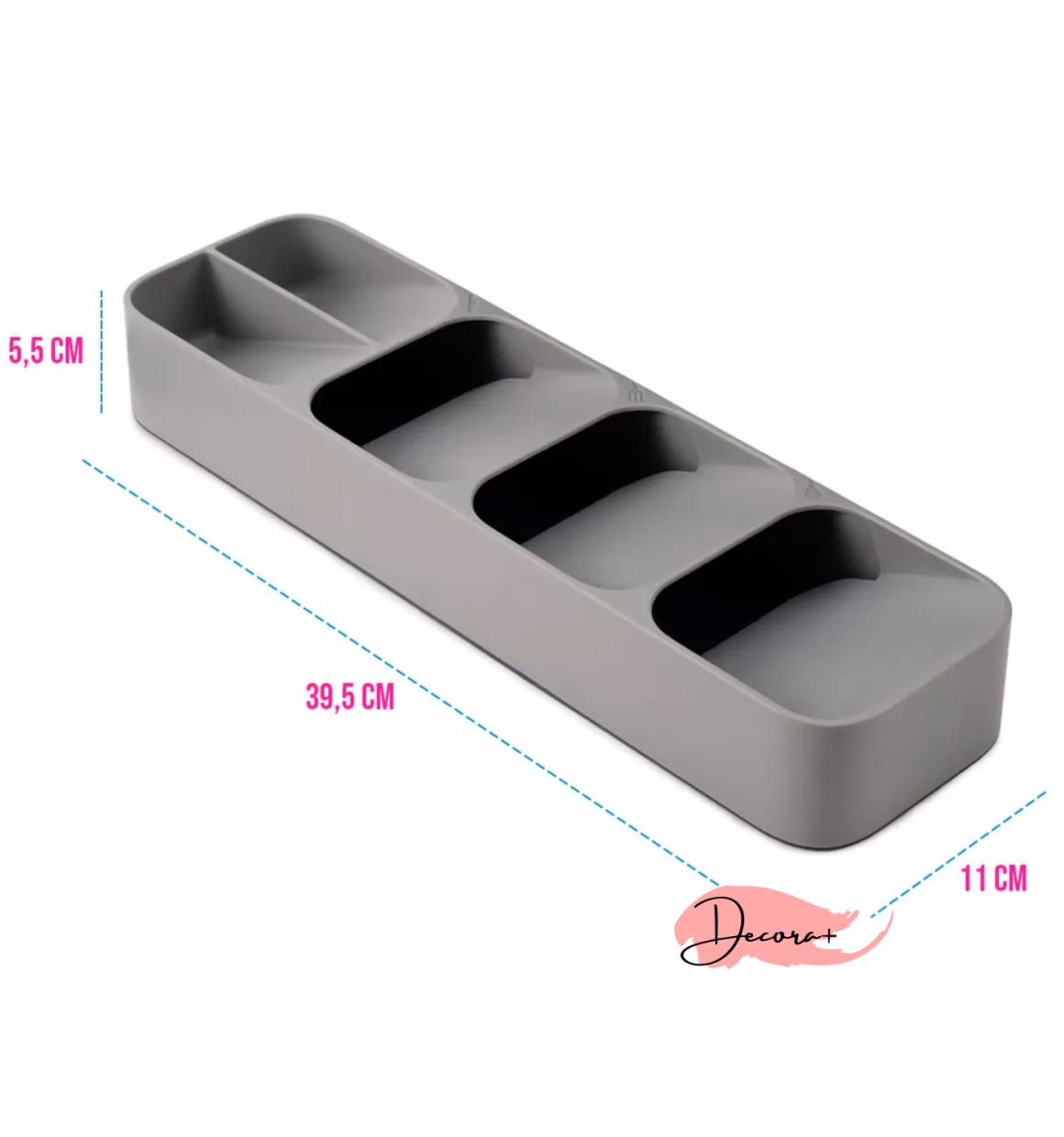 Porta Talheres Retangular c/ 5 Divisorias - Cinza