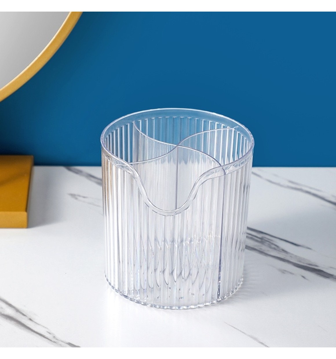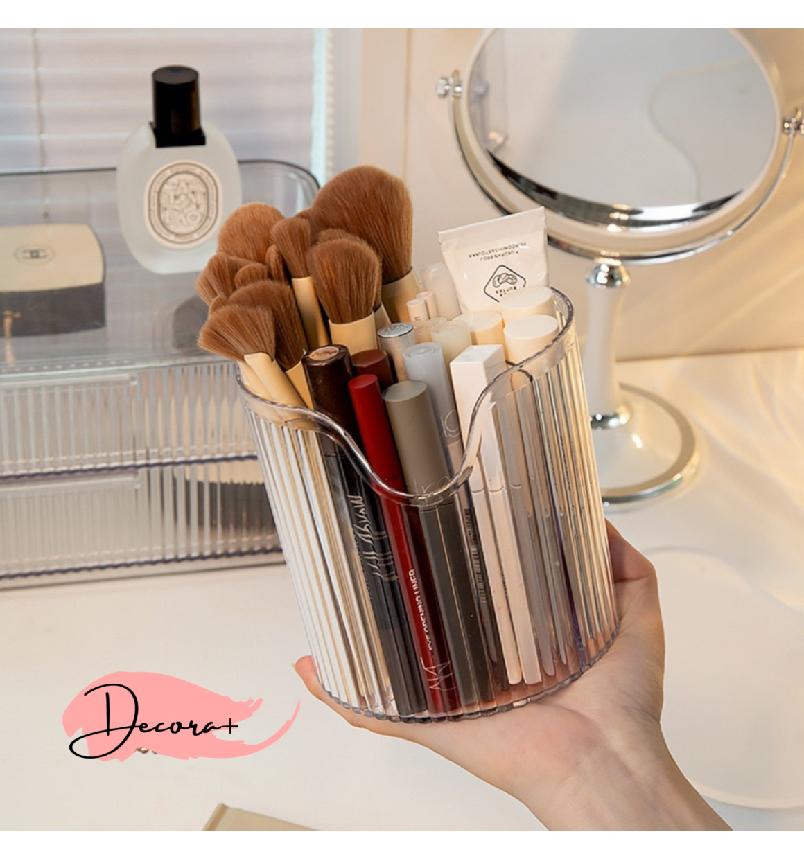 Design Redondo: Com formato redondo, esse organizador é perfeito para acomodar objetos de diversos tamanhos, como maquiagens, acessórios, material de escritório, entre outros.