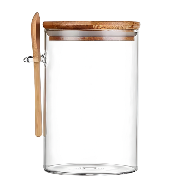 Pote de Vidro com Tampa e Colher de Bambu - 650ml