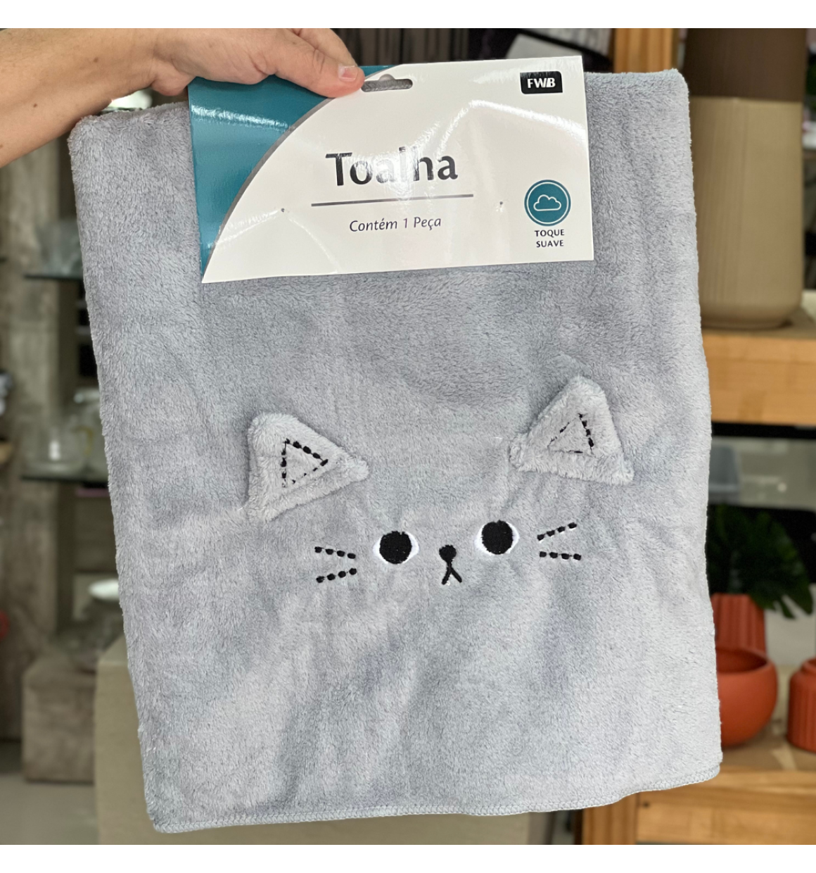 Toalha Infantil Gatinho - Cinza 1,40cm X 70cm