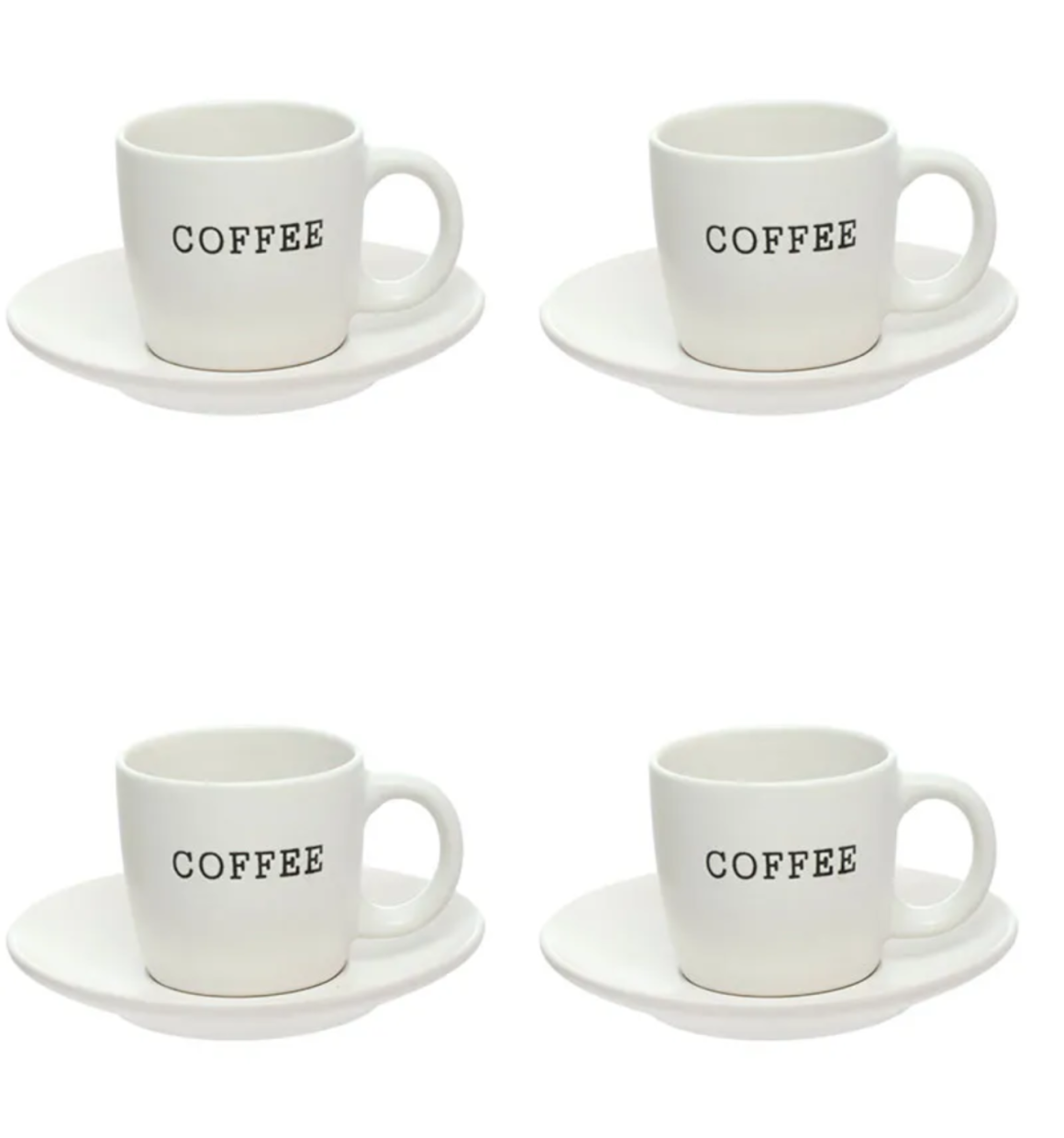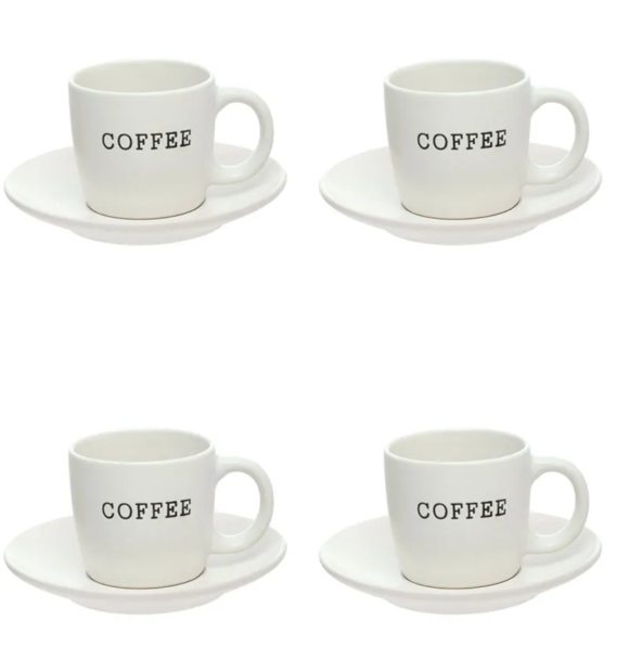 Jogo com 4 Xicaras e Pires de Café Cremona 130ml