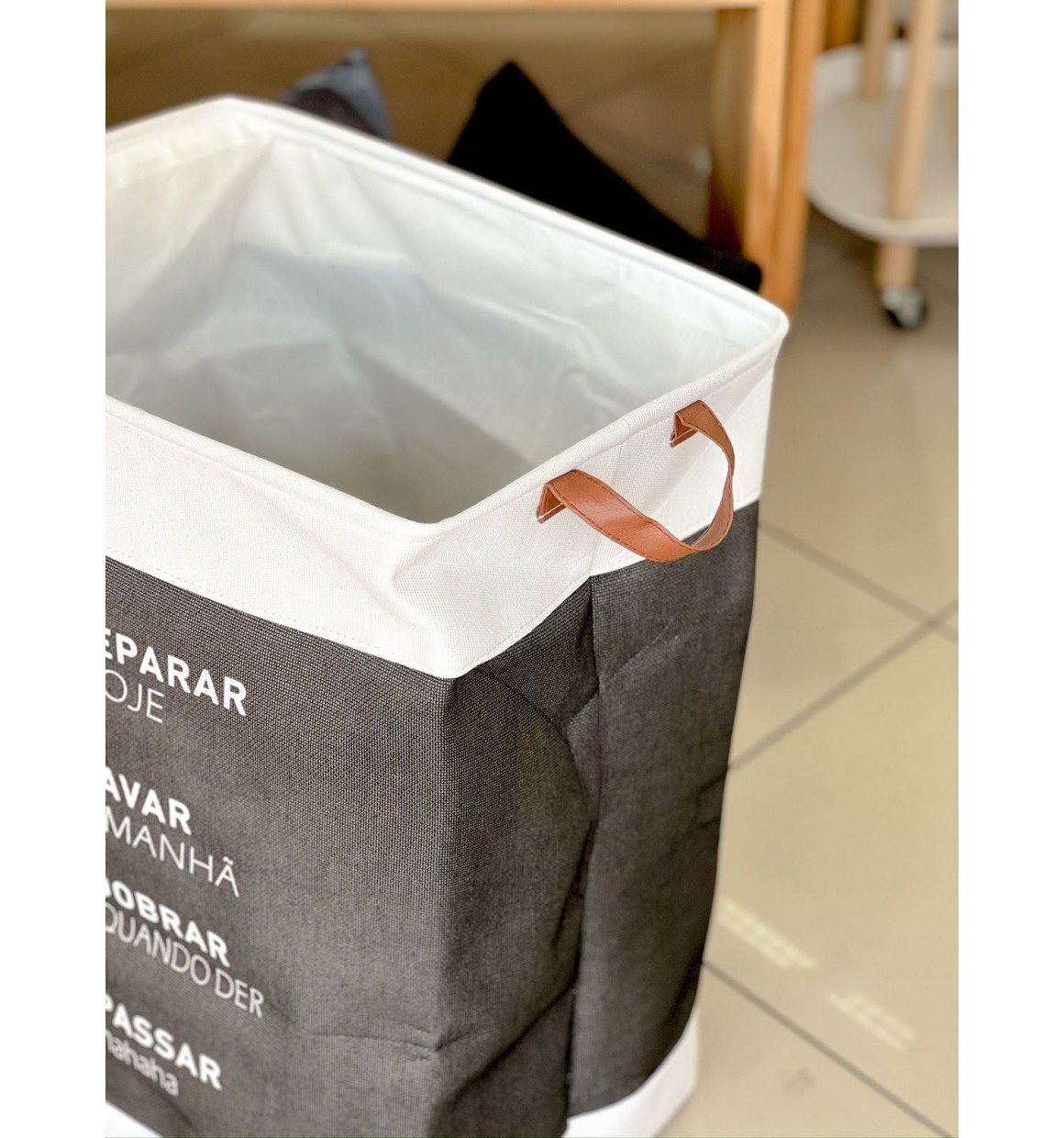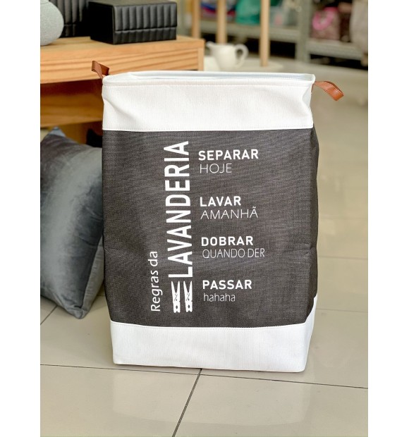 Cesto de Roupa Preto c/ Branco "Regras da Lavanderia" 40cm X 30cm X 55cm