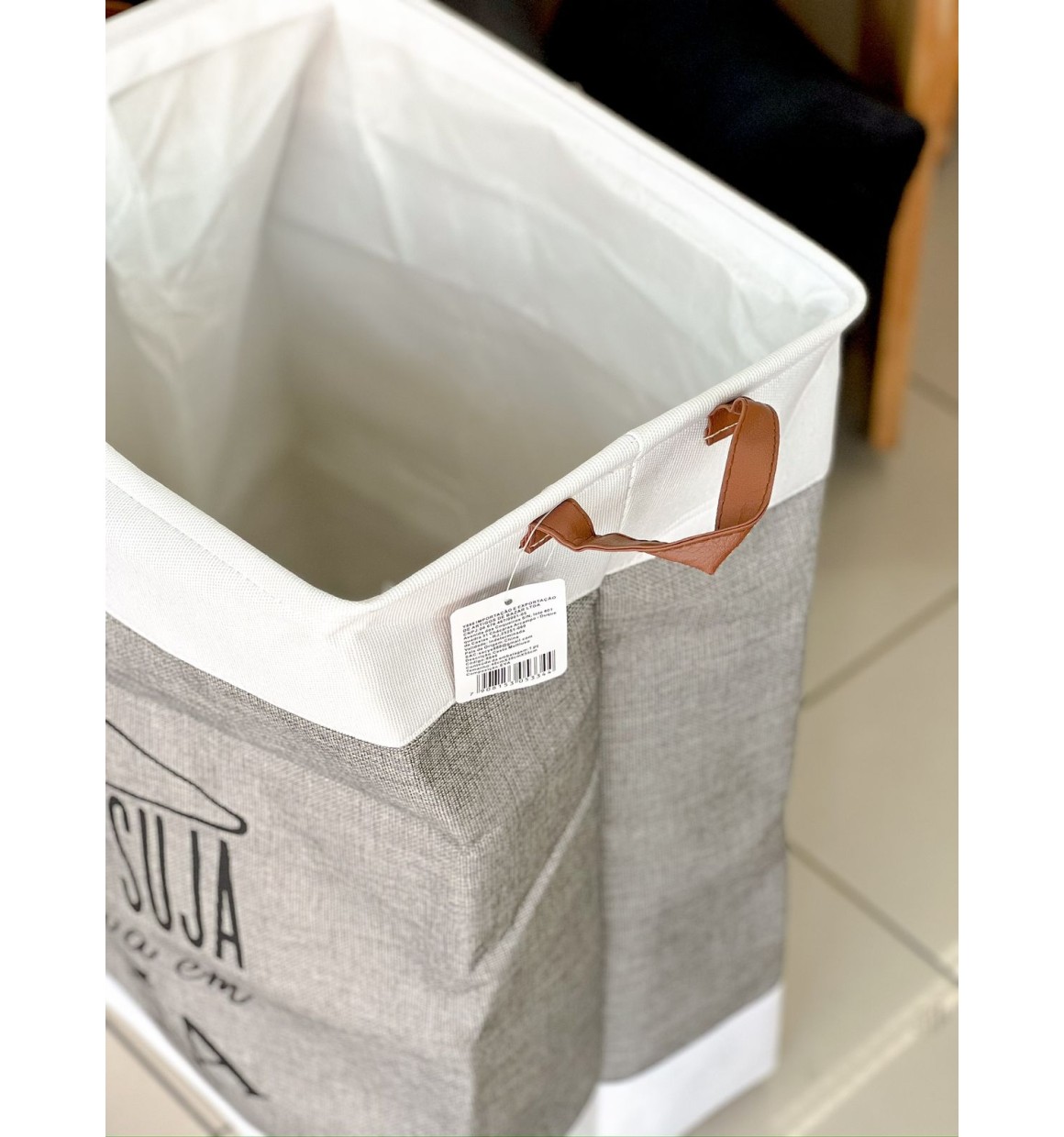 2. Cesto de Roupa Cinza c/ Branco "Roupa Suja se Lava em Casa" 40cm X 30cm X 55cm