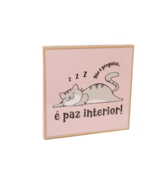 Quadro Gatinho "Não é Preguiça,é Paz Interior" - 18cm X 18cm