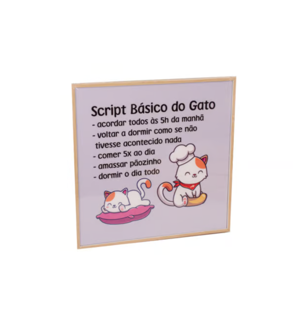Quadro Gatinho "Script do Gato" - 18cm X 18cm