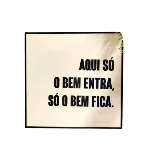 Inspire-se diariamente com o Quadro Decorativo com a Frase Aqui Só o Bem Entra, Só o Bem Fica. Medindo 25cm x 25cm, este quadro é perfeito para adicionar um toque motivacional e estiloso ao seu ambiente, ideal para salas, quartos ou escritórios.
