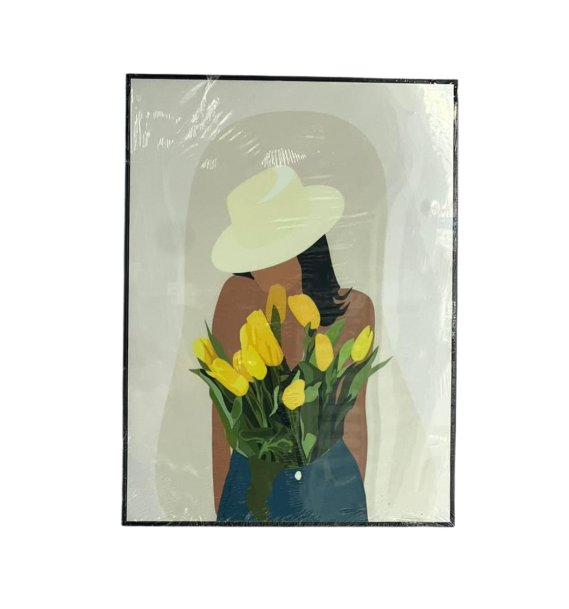 Quadro Mulher com Buquê Acetato MDF - 29cm X 39cm X 1,8cm