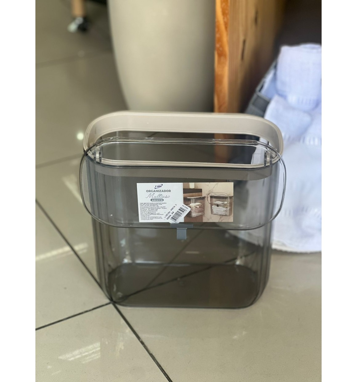 Lixeira de Acrilico c/ Tampa e Adesivo Fumê - 25.5cm X 14cm X 25.5cm