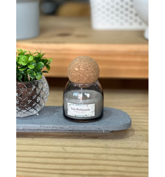 Vela Branca Aromatizada C/ Tampa de Cortiça - Fumê 6,5cm X 6cm
