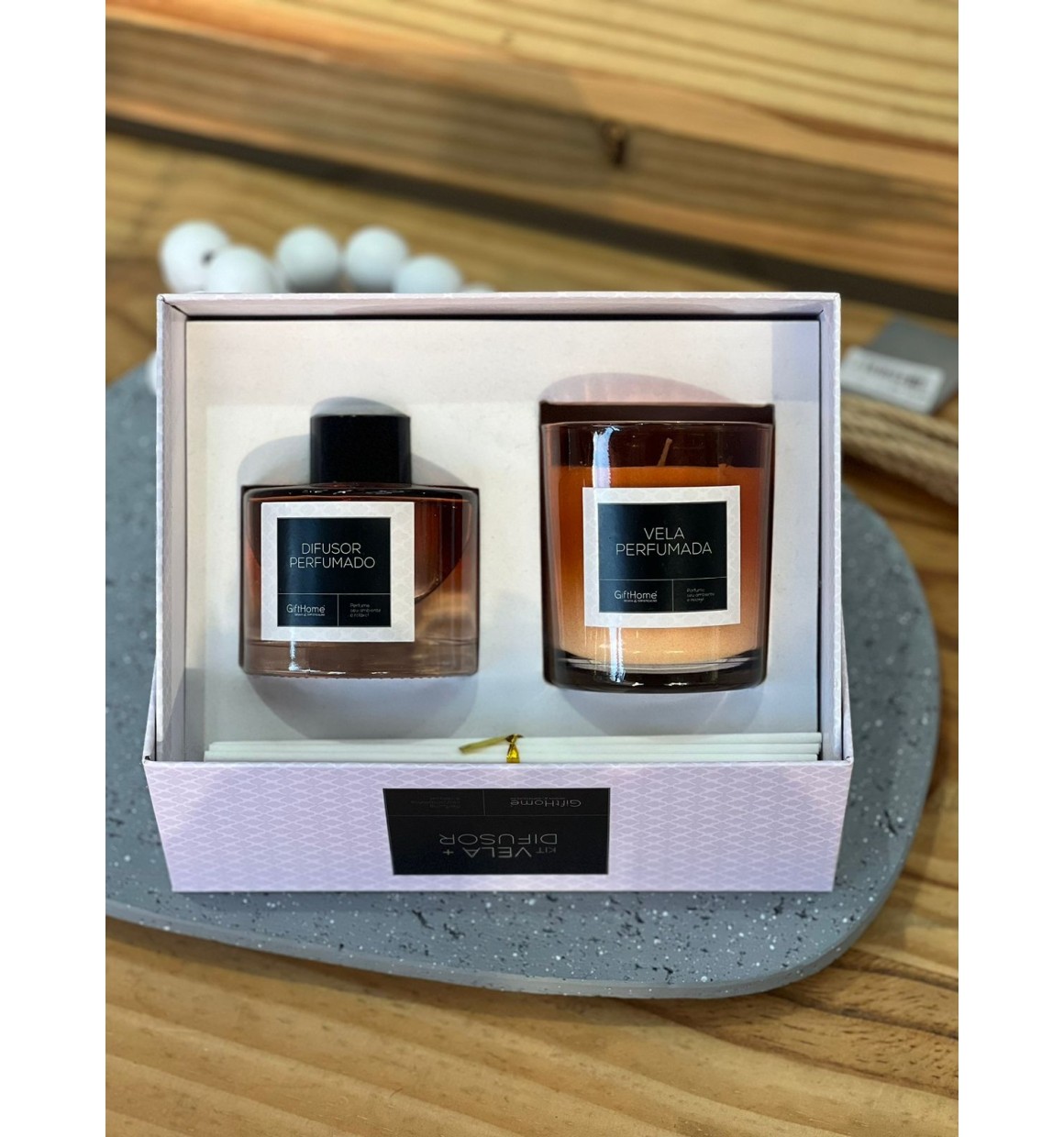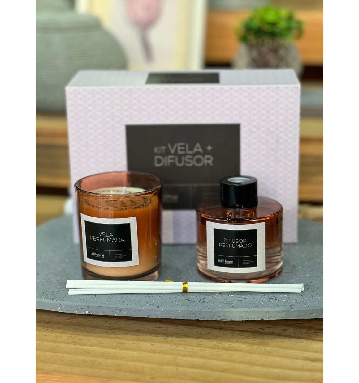 Kit Vela Branca e Difusor de Ambientes Âmbar - 2 Peças 100ml