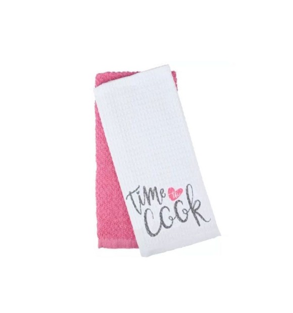 Kit com 2 Panos de Prato Gastronomie - Mod 6 Time to Cook Rosa