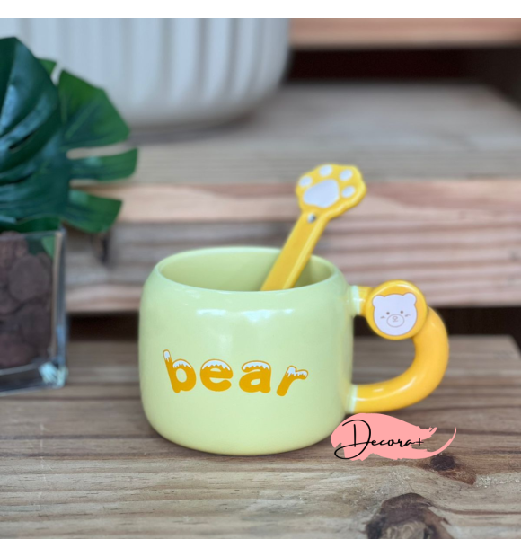 Caneca de Cerâmica Amarela c/ Colher - Urso 400ml