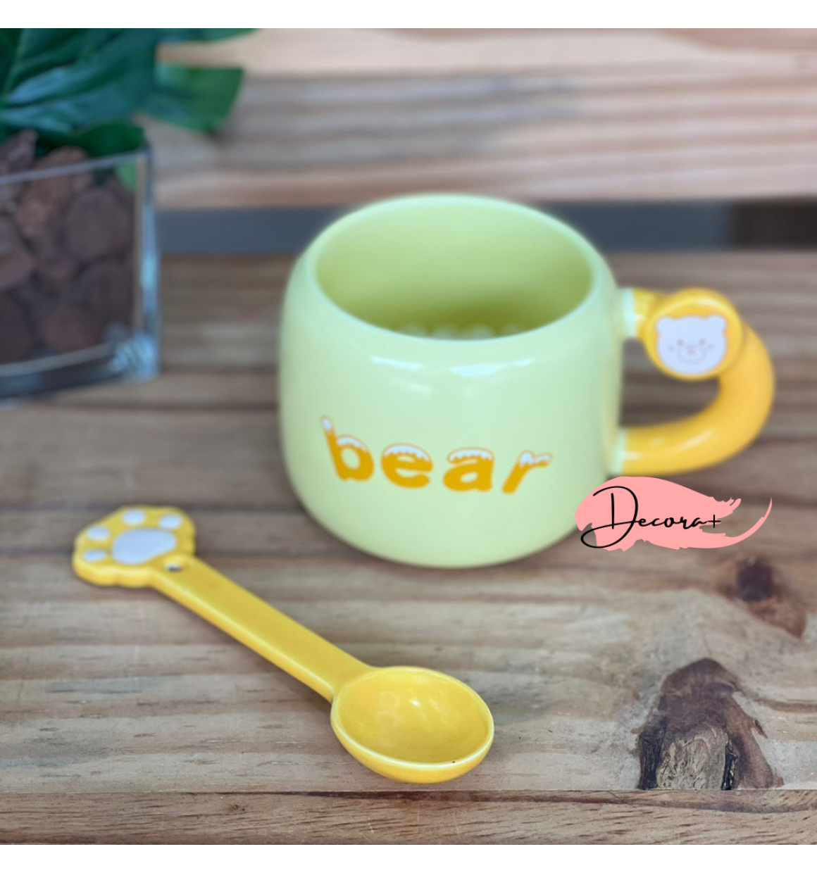 A Caneca de Cerâmica com Colher, decorada com um simpático ursinho ("bear"), é perfeita para seus momentos de descontração. Com capacidade para 400ml, ela combina charme e praticidade.