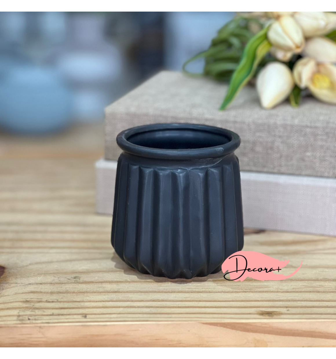 Vaso Canelado de Cerâmica Preto - 9cm X 9cm