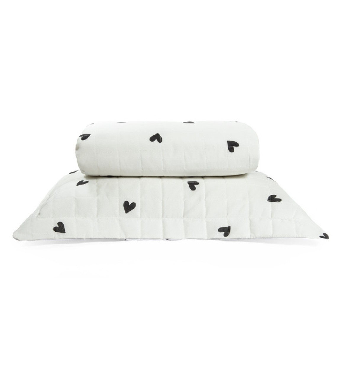 Cobre Leito Essencialle Corações Preto e Branco Solteiro 2 peças