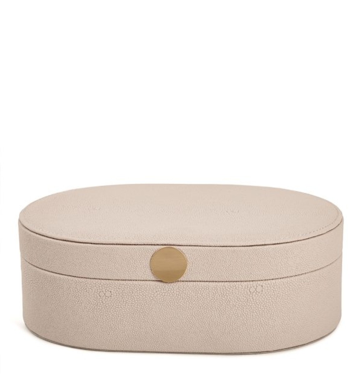 Caixa de MDF com Revestimento em PU Oval - Bege 23,5cm x 16cm x 8cm