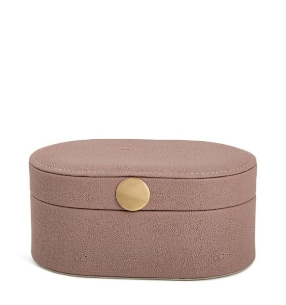 Caixa de MDF com Revestimento em PU Oval - Bege 17,5cm x 11cm x 8cm