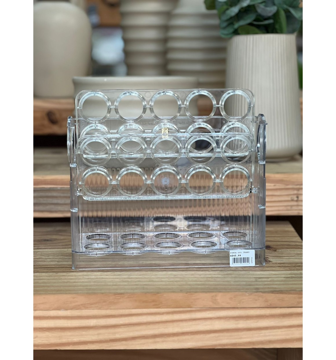 Acabou a bagunça na geladeira! Com este Porta Ovos de Acrílico, você mantém até 30 ovos perfeitamente organizados em 3 compartimentos, com um design moderno e funcional que deixa tudo à mão.