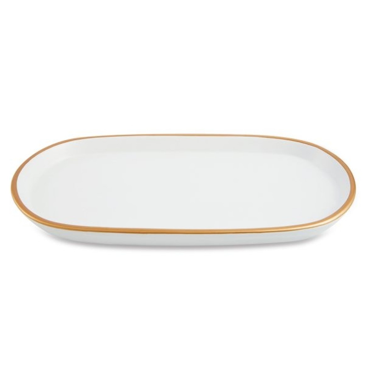 Bandeja de Cerâmica Branca c/ Borda Dourada - 26cm x 14cm
