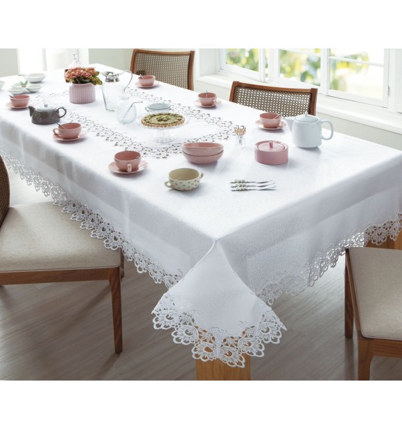 Toalha de Mesa Branca Rendada Veneza -  6 Lugares /150xm X 220cm