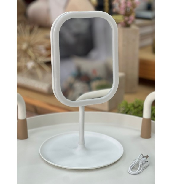 Espelho de Mesa c/Led Ajustável e Recarregavel c/Cabo USB - Branco