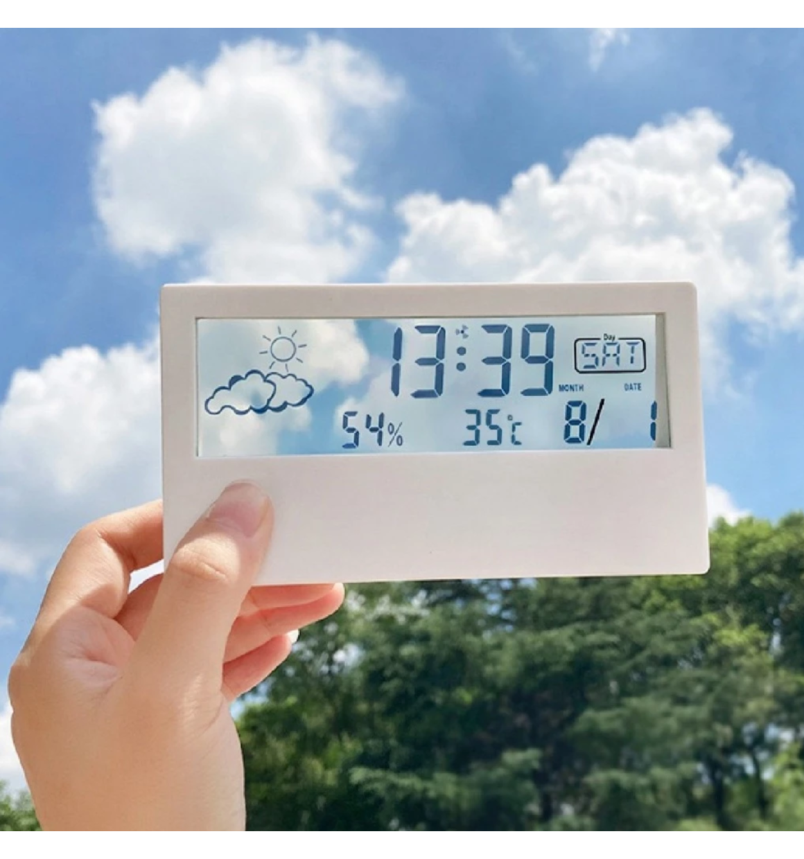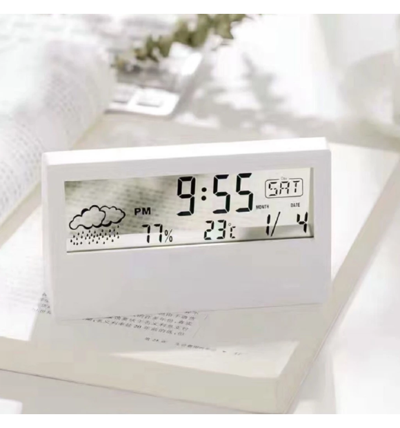 Praticidade e estilo em um só acessório! O Relógio Branco Digital de Mesa te ajuda a começar o dia na hora certa com sua função alarme. Além de marcar o tempo, ele ainda exibe a temperatura do ambiente. Perfeito para deixar sua mesa mais moderna!Funciona com 2 pilhas AAA (não inclusas).