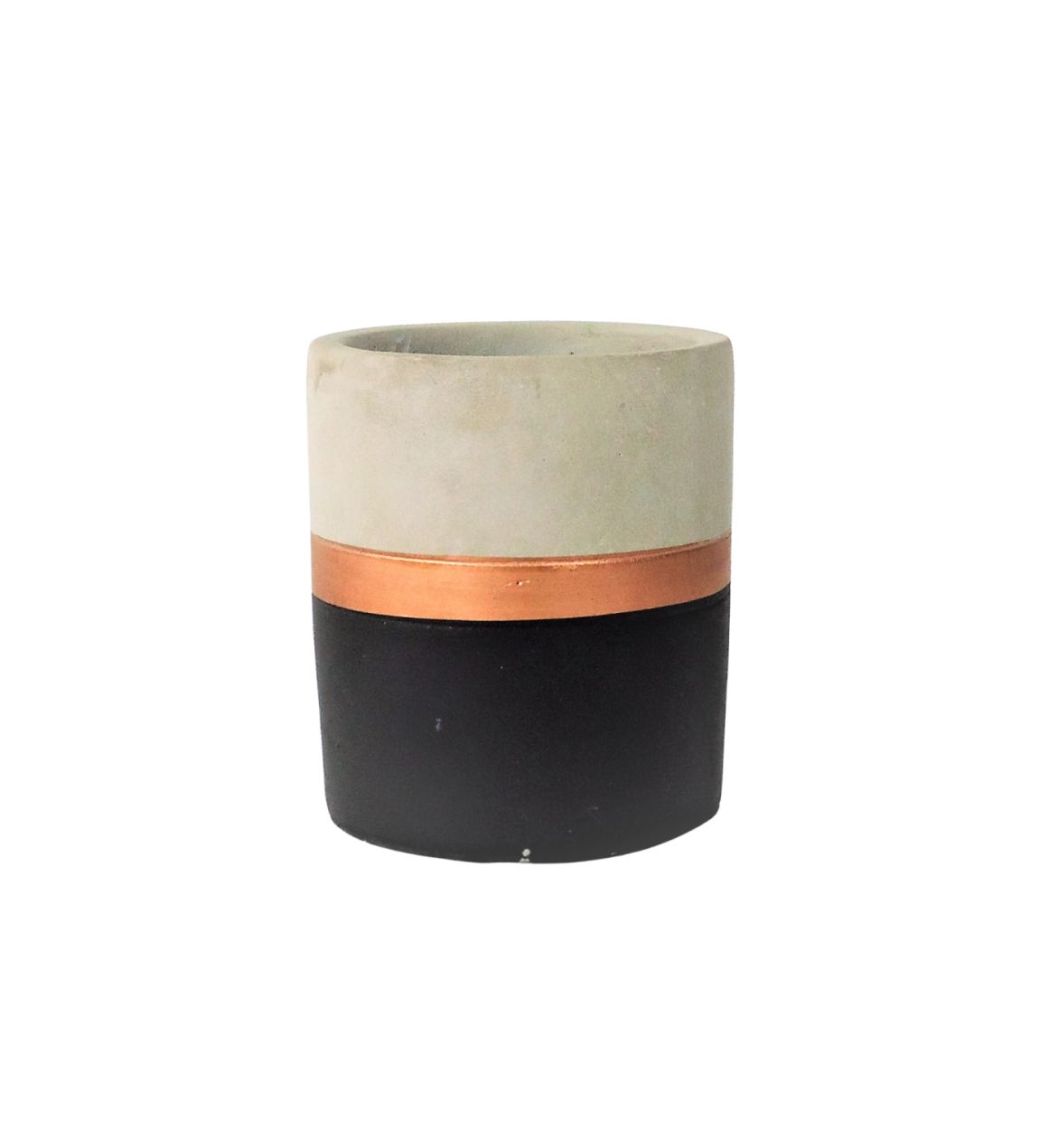 Vaso de Porcelana Preto com Faixa Rose - 8cm x 9cm