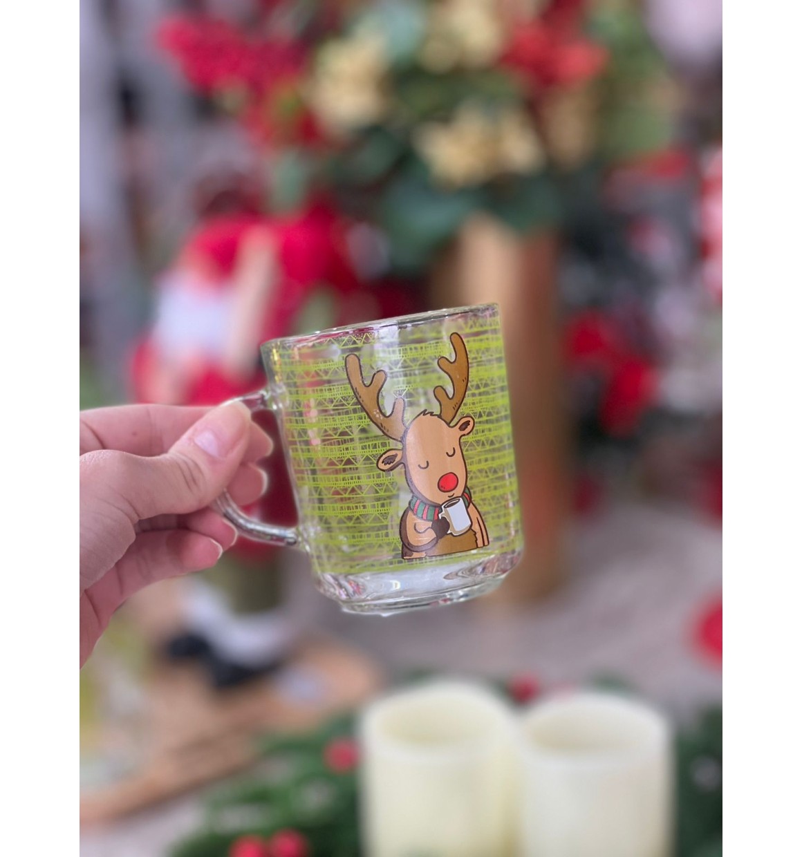Caneca Natalina de Vidro 250ml Rena