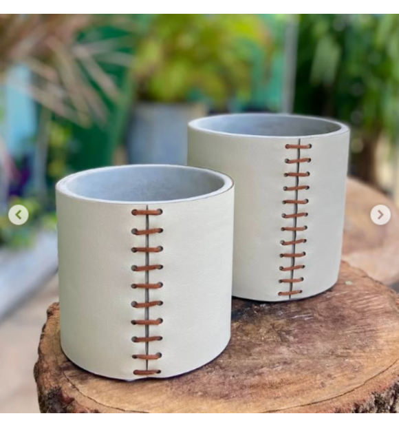 2. Vaso de Cimento c/ Couro Cinza - 15cm X 14,5cm